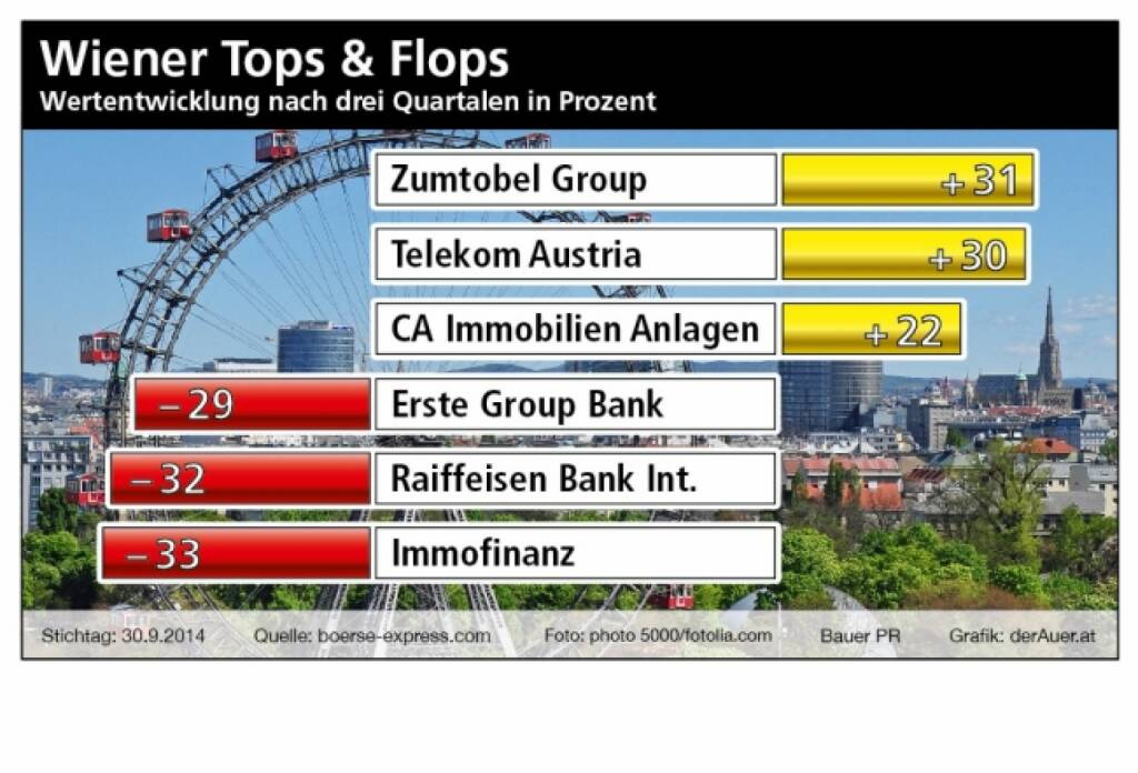 Top/Flop Wien nach Q3:: Zumtobel, Telekom, CA Immo, Erste Group, RBI, Immofinanz (Bauer PR, derAuer.at)