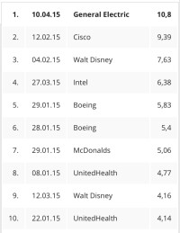 Bisher hatte Cisco den höchsten Dow-Tagesgewinn 2015 inne. Seit gestern GE.