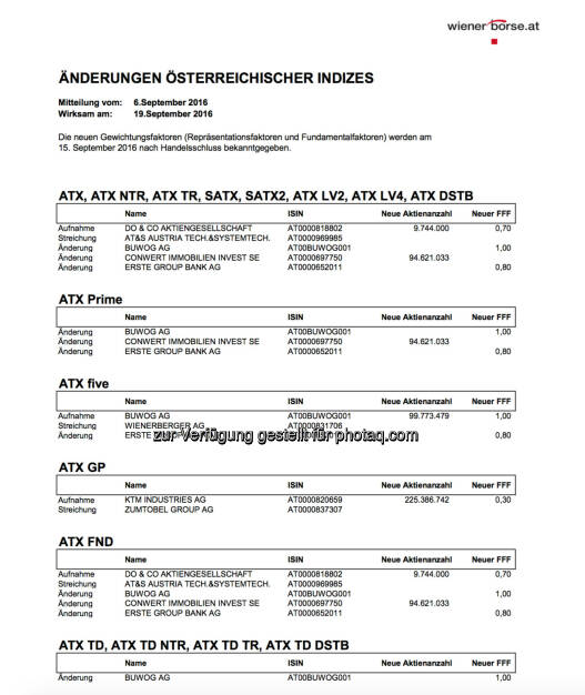 "Liebe Leser! Die Wiener Börse hat die ATX-Beobachtungsliste 8/2016 veröffentlicht. Diese umfasst die Gesamtbörseumsätze 9/2015 bis 8/2016 der prime market-Werte. Sie ist massgeblich für die Umstellung per September-Verfall. Erstmals wurde die VWAP-Methode angewandt.