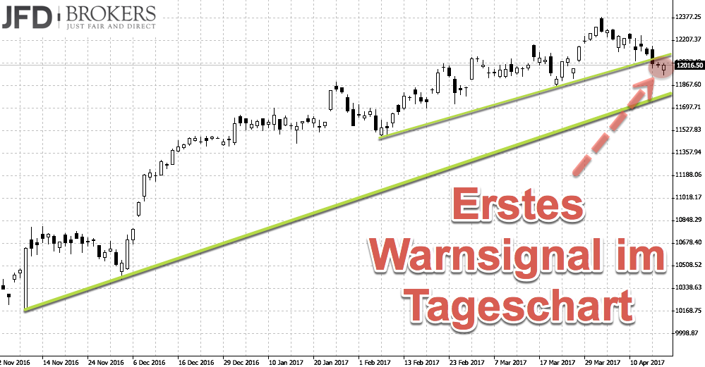 Auch wenn es danach für den Rest der Handelswoche einen Kampf um die 12.000er-Marke gab, konnte die Abwärtstendenz nicht überwunden werden und es blieb ein „Erstes Warnsignal im Tageschart“ zurück: