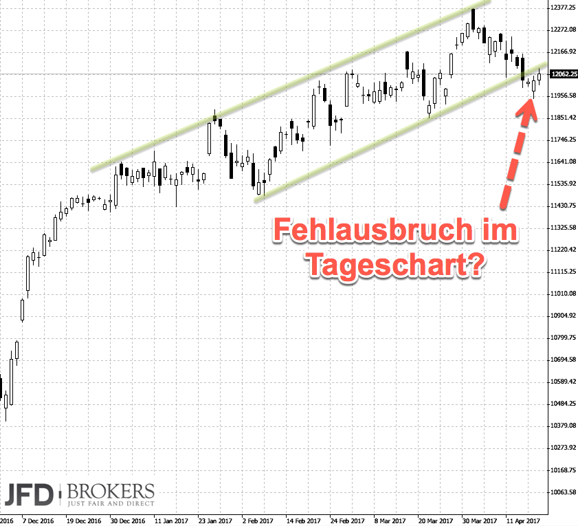Insgesamt schlossen alle 4 Handelstage der Vorwoche über 12.000 Punkten, auch wenn es zwischenzeitlich immer wieder zu Abgabedruck darunter kam. Es gab keine panikartigen Reaktionen im Vorfeld der DAX nach Frankreich-Wahl.
