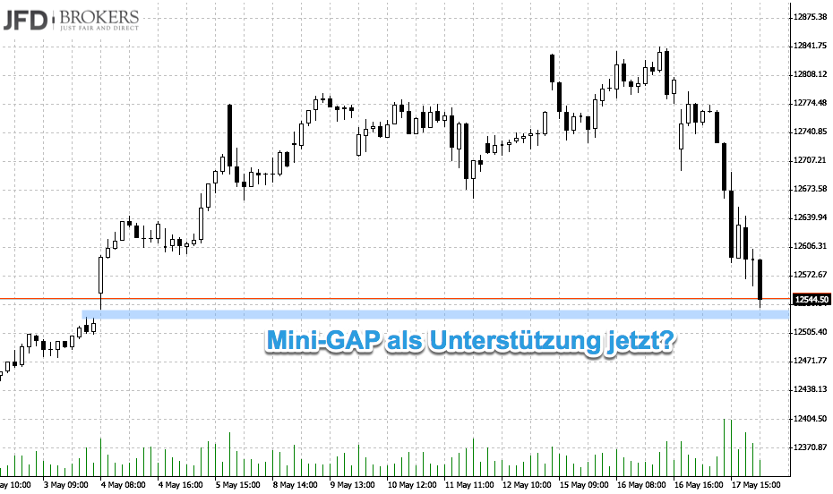 Das Ende dieser Bewegung und damit die Unterstützung im Markt fand sich bei knapp unter 12.500 Punkten und damit den Hochs aus Ende April: