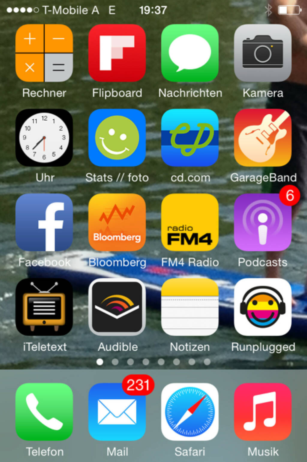 iPhone Startscreen eines finanzmarktfoto-Mitarbeiters, April 2014