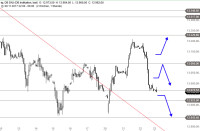 Rückblick: Nach einem bullischen Doppelboden bei 12.850 Punkten startete der DAX in dieser Woche eine Erholung, die am Dienstag fast an den Widerstand bei 13.229 Punkten geführt hatte. Im gestrigen Handel wurden diese positiven Vorgaben allerdings komplett zunichtegemacht. Denn nach dem Rücksetzer unter die Haltemarke bei 13.150 Punkten startete eine Verkaufswelle, die den Index unter die Unterstützung bei 13.095 Punkten einbrechen ließ. Im späten Handel setzte sich der Einbruch ungebremst fort und drückte den DAX an die Haltemarke bei 12.970 Punkten. Damit ist die Wahrscheinlichkeit erheblich gestiegen, dass am Hoch bei 13.210 Punkten der übergeordnete Abwärtstrend reaktiviert wurde.