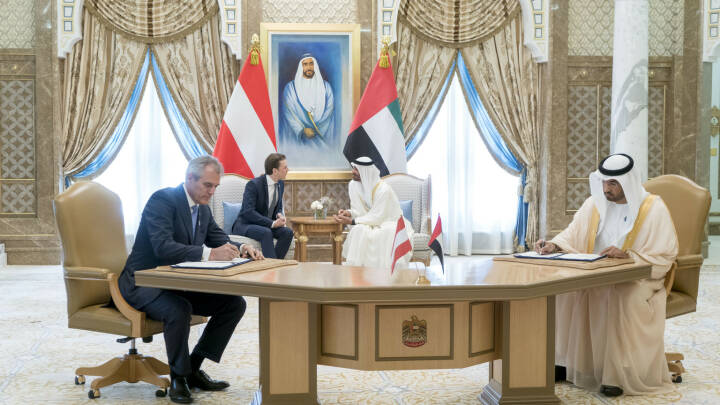 Im Beisein von Seiner Hoheit Sheikh Mohammed bin Zayed Al Nahyan, Kronprinz von Abu Dhabi und stellvertretender Oberbefehlshaber der Streitkräfte der Vereinigten Arabischen Emirate, und Sebastian Kurz, Bundeskanzler der Republik Österreich, wurde heute ein Abkommen zwischen seiner Exzellenz Dr. Sultan Ahmed Al Jaber, ADNOC Group CEO und Dr. Rainer Seele, Vorstandsvorsitzender der OMV unterzeichnet.