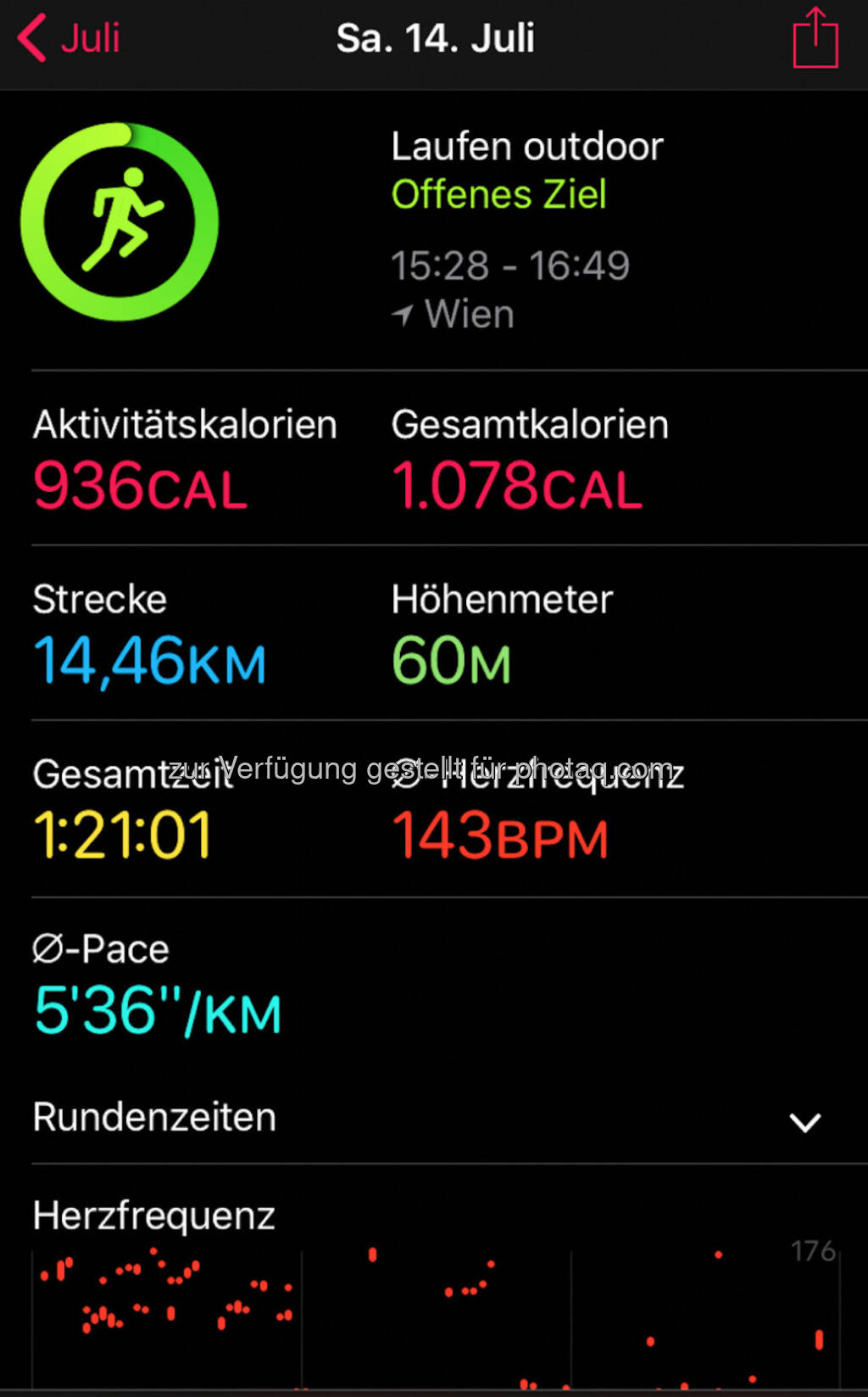 Am Samstag bin ich während des Spiels um Rang 3, das ich mir auf die Festplatte aufgenommen habe, noch eine Runde "Alte Donau" gelaufen. Wieder nicht auf Pace, sondern einfach so. Eine gute Einheit.