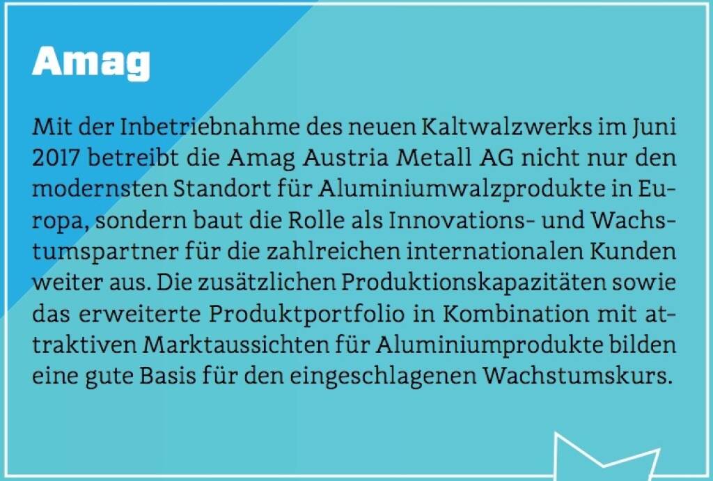 Tagesgewinner war am Dienstag Amag mit 3,47% auf 35,80 (1072% üblicher Tagesumsätze, 1-Week-Performance -14,35%) vor Zumtobel mit 3,21% auf 8,36 (105% Vol.; 1W 2,70%) und AMS mit 2,99% auf 32,42 (0% Vol.; 1W 0,81%). Die Tagesverlierer: Semperit mit -2,40% auf 14,64 (27% üblicher Tagesumsätze, 1-Week-Performance -1,74%), RHI Magnesita mit -2,27% auf 42,10 (39% Vol.; 1W -5,69%), Fabasoft mit -1,95% auf 12,60 (0% Vol.; 1W -1,56%)