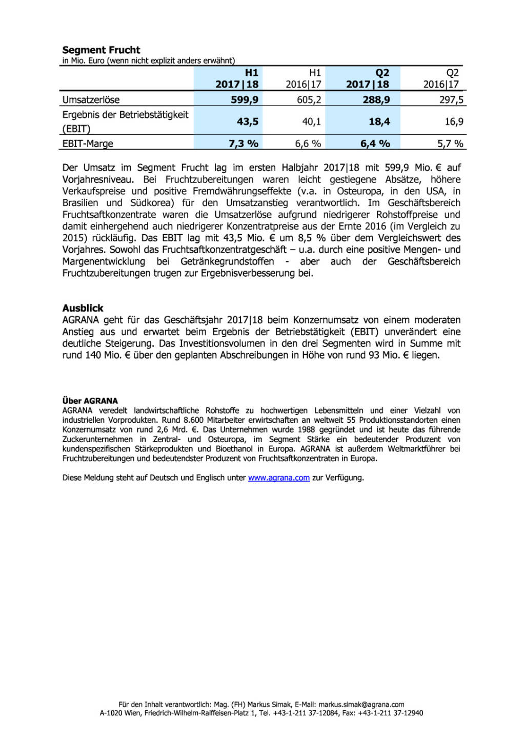 Diese Meldung steht auf Deutsch und Englisch unter www.agrana.com [http://