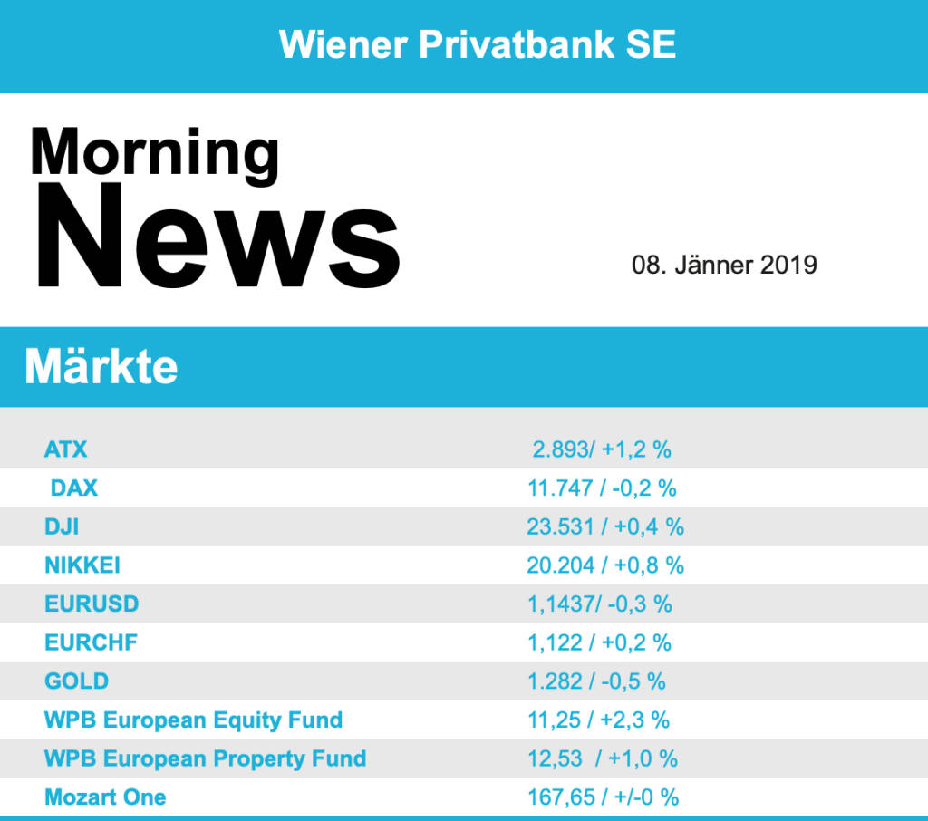 Leicht nach oben ging es gestern für die Ölpreise, bei Brent betrug das Plus 0,5%, WTI schloss 1,2% höher. Gold zeigte sich nach einem ruhigen Handel leicht befestigt und wurde bei rund 1.289 US-Dollar gehandelt. Der Euro konnte im Handel gegen den US-Dollar dazugewinnen, gegen Abend wurde das Währungspaar bei einem Wert von knapp unter 1,148 gehandelt.