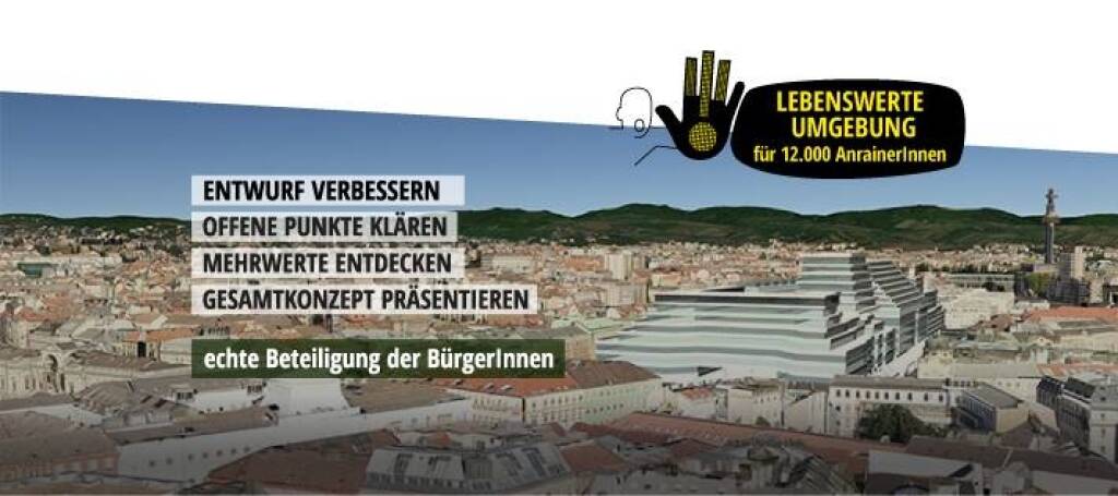 „Wien wächst“ ist vielerorts in unserer Stadt das aktuelle Totschlagargument der Politik gegen alle Initiativen, die sich für den Erhalt der Lebensqualität in ihrem Lebensumfeld einsetzen. Die Initiativen wollen nicht jede Entwicklung verhindern, sie soll aber verträglich sein mit den Qualitäten des Bestehenden. Beteiligung darf sich nicht in Bürgerinformation erschöpfen. Die Information aber soll bereits dann erfolgen, wenn die BürgerInnen durch echte Beteiligung noch etwas bewirken können. Klar ist auch: jede Initiative muss den für sie passenden Mix an Instrumenten der Kommunikation und Aktion finden. Die Erfahrungen anderer Initiativen können dabei aber eine große Hilfe sein.