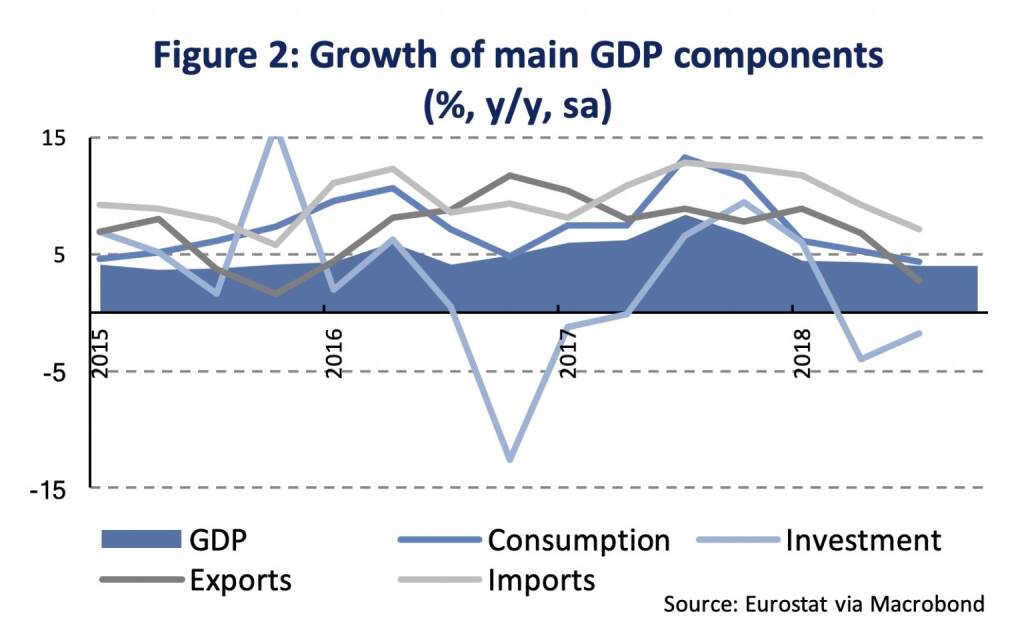 - Increasing reliance on household consumption makes Romania’s growth structure rather unbalanced.
