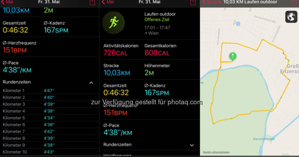 So, nach viel Arbeit und Baustelle in den vergangenen Tagen bin ich zum Monatsschluss nochmal einen 10er. Und dieser war mit 46:32 der schnellste draussen heuer. Recht konstant um die 4:38 herum.