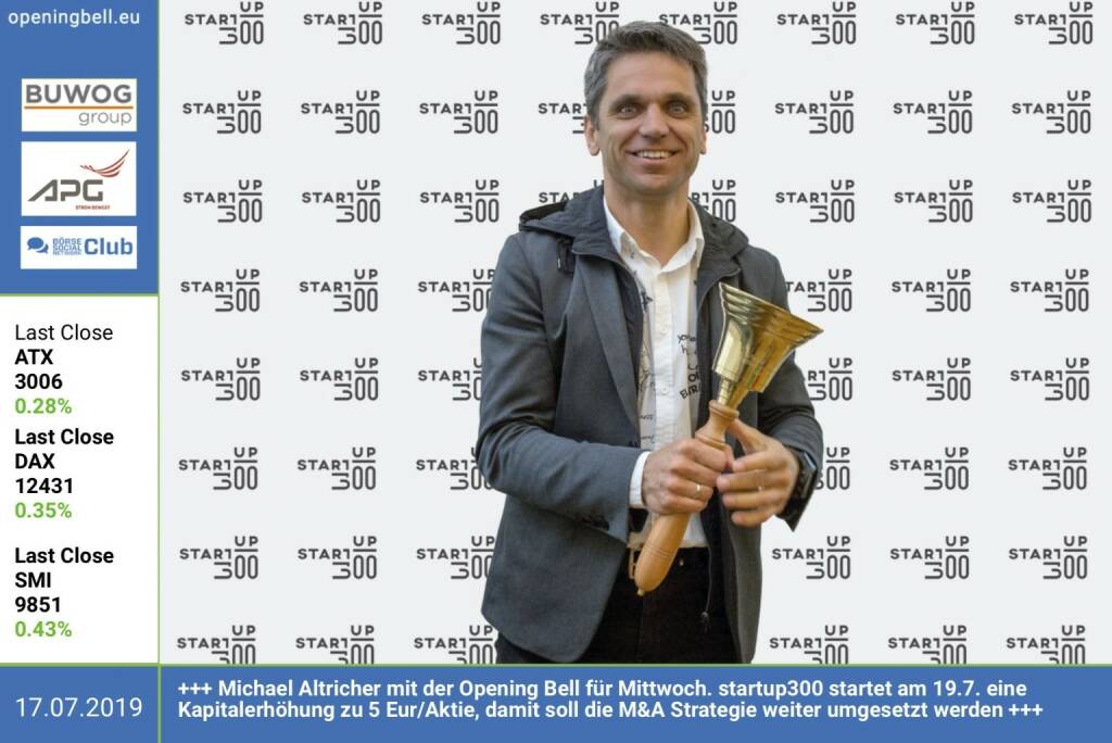 17.7.: Michael Altricher mit der Opening Bell für Mittwoch. startup300 startet am 19.7. eine Kapitalerhöhung zu 5 Eur/Aktie, damit soll die M&A Strategie weiter umgesetzt werden http://startup300.at https://www.facebook.com/groups/GeldanlageNetwork