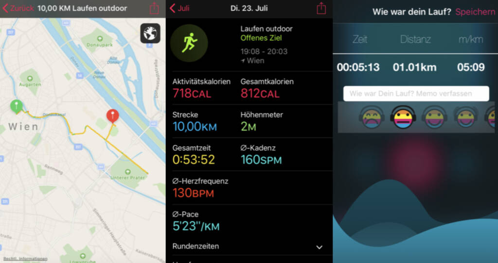 Ein Highlight im Rahmen meines Juli-Laufschwerpunkts war der gestrige Plauder-Run mit Signa-Kommunikator Robert Leingruber. Zwar war es um 19 Uhr nicht mehr ganz so heiss, aber trotzdem drückend. So sind wir vom Signa-Office auf der Freyung in lockeren 5:23 in den Prater, exakt 10k. Ich liebe diese Plauderläufe, es sind "mit" die besten Gespräche, nicht abgelenkt und die Kilometer fliessen trotz oder wegen der Gespräche einfach so mit. Bin dann nach U-Bahn-Session noch einen Kilometer ausgelaufen.