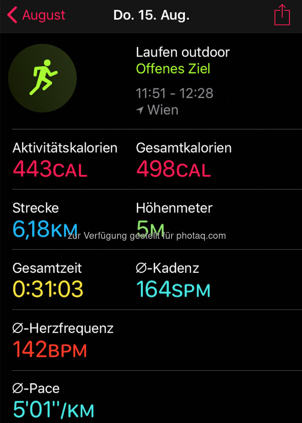 Solide 6k in einer 5er Pace am Feiertag, während die Börsen am Vormittag so richtig fett in die Knie gegangen sind. Aber am Abend hat sich das alles wieder ein bisschen beruhigt.