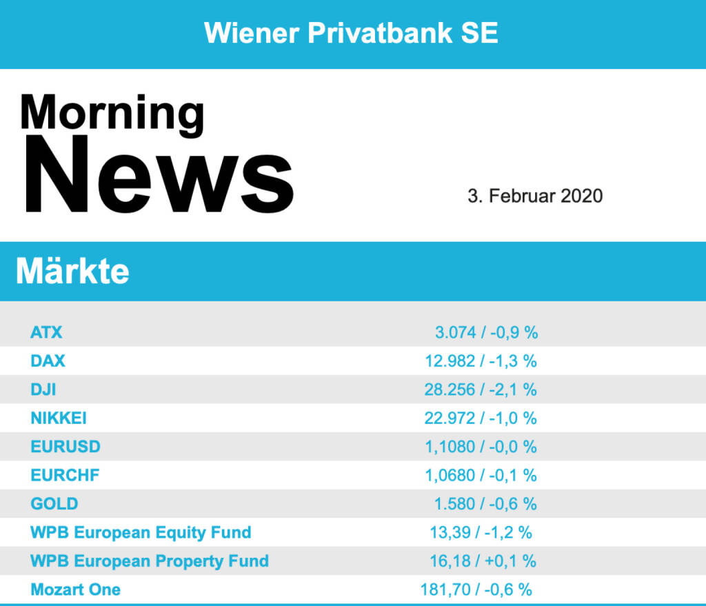 Weiterhin sorgt die Ausbreitung des Coronavirus für Unsicherheit an den Märkten. Die Weltgesundheitsorganisation (WHO) hatte am Vorabend wegen des Ausbruchs des Coronavirus eine "gesundheitliche Notlage von internationaler Tragweite" ausgerufen. Gleichzeitig hatte die WHO aber betont, dass derzeit keine Reise-und Handelsbeschränkungen nötig seien. Bei den Einzelwerten gehörten die Aktien der Agrana mit einem Plus von 1,59 Prozent auf 19,20 Euro zu den größten Gewinnern im prime market. Der Zucker-, Stärke- und Fruchtkonzern übernimmt seinen langjährigen Vertriebspartner aus den USA, Marroquin Organic International. Das Unternehmen mit Sitz in Kalifornien kümmert sich um den US-Vertrieb von Stärkeprodukten der Agrana. Unterstützung für die Agrana-Papiere kam auch vom Rohstoffmarkt, der Zuckerpreis setzte seine jüngste Aufwärtsbewegung fort. Außerdem hat Porr eine nachrangige Anleihe mit einem Volumen von 150 Mio. Euro begeben. Weiters wurden von dem 2017 emittierten Bond rund 25,7 Mio. Euro zurückerworben. Die neue Anleihe, die bei institutionellen Investoren platziert wurde, hat eine unbegrenzte Laufzeit, kann aber nach fünf Jahren vorzeitig durch die Emittentin zurückgezahlt werden. Die Porr-Aktien verloren 0,25 Prozent auf 15,76 Euro.