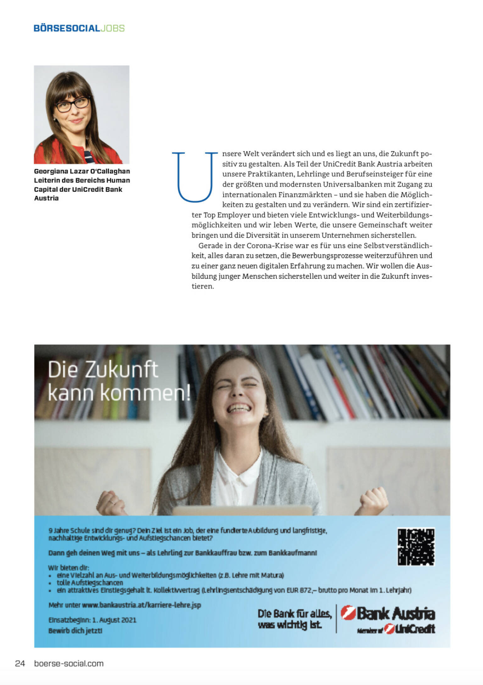 1047 ZeichenGeorgiana Lazar O‘Callaghan, Leiterin des Bereichs Human Capital der UniCredit Bank Austria