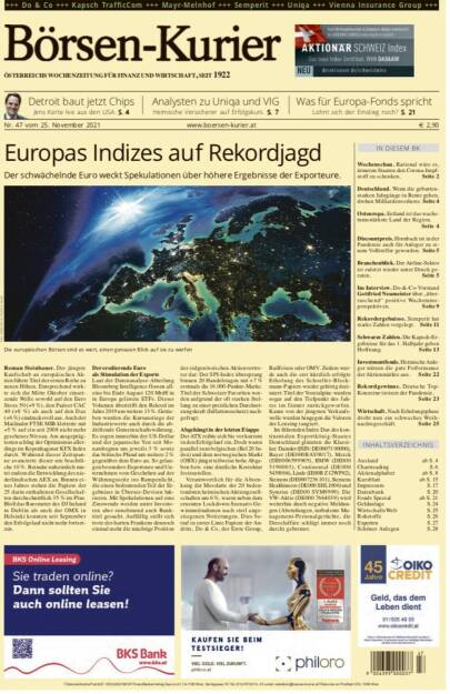 Und wieder ein Blick in den Börsen-Kurier Nr. 47, 25.11.2021, www.boersen-kurier.at