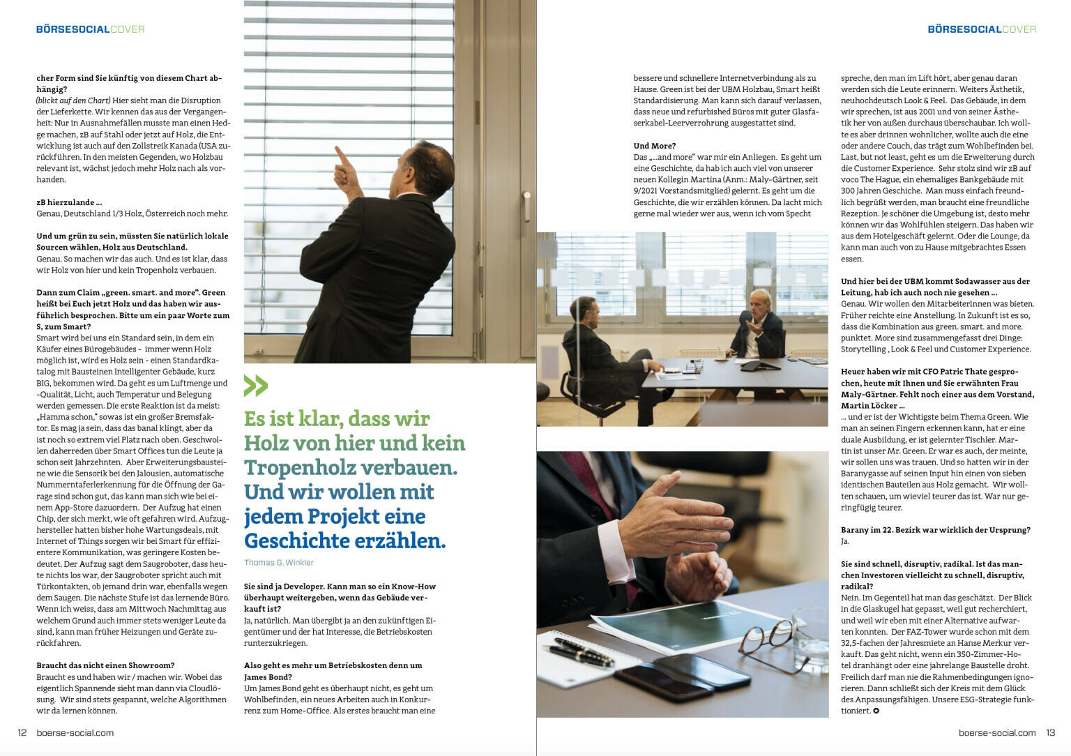 13369 ZeichenThomas G. Winkler, CEO der UBM, hat sich vor eineinhalb Jahren ganz bewusst auf den Holzweg begeben und will der führende Holzbaudeveloper Europas werden. Warum er vom Erfolg der Strategie überzeugt ist, führt er im BSM-Interview detailverliebt aus. Die Aktionäre mögen die neue Equity Story.