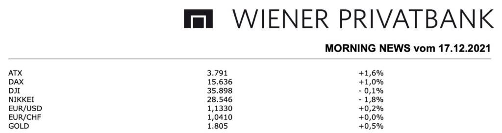 Die Wiener Börse hat am Donnerstag sehr fest geschlossen. Der heimische Leitindex ATX gewann deutliche 1,61 Prozent auf 3.791,32 Punkte. Der ATX Prime steigere sich in ähnlichem Ausmaß um 1,63 Prozent auf 1.902,16 Einheiten. Auch die europäischen Leitbörsen präsentierten sich in starker Verfassung. Im Fokus standen international die Entscheidungen der führenden Notenbanken. Bereits am Vorabend hatte die US-Notenbank die Zinsen unverändert belassen und im kommenden Jahre drei Zinserhöhungen signalisiert. Die internationalen Investoren begrüßten, dass es nun Klarheit über die Zinsentwicklung in den USA gibt. Die Bank von England (BoE) hat heute als erste der großen Zentralbanken weltweit die Zinsen seit Ausbruch der Coronapandemie erhöht. Der geldpolitische Schlüsselsatz wurde überraschend von zuvor 0,1 auf 0,25 Prozent angehoben. Die Währungshüter reagierten damit auf den rasanten Preisanstieg auf der Insel. Die EZB beließ die Leitzinssätze wie Experten im Vorfeld erwartet hatten unverändert. EZB-Chefin Christine Lagarde sagte zudem, dass eine Zinserhöhung im Euroraum im Jahr 2022 sehr unwahrscheinlich sei.