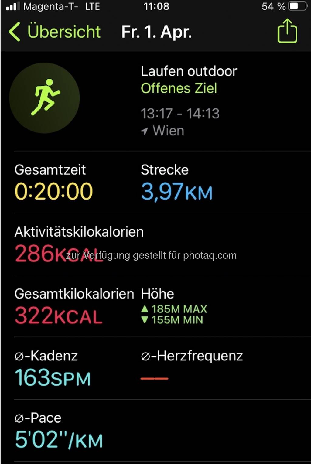 Runkit rechnet: Christian ist im April bisher 3,970 km gelaufen, im Schnitt täglich 1,985 km, ein Minus von 37,35 Prozent gegenüber dem März, als Christian 3,168 km Tagesschnitt hatte. Christians Top-Monat bisher: November 2020 mit 10,999 km täglich.