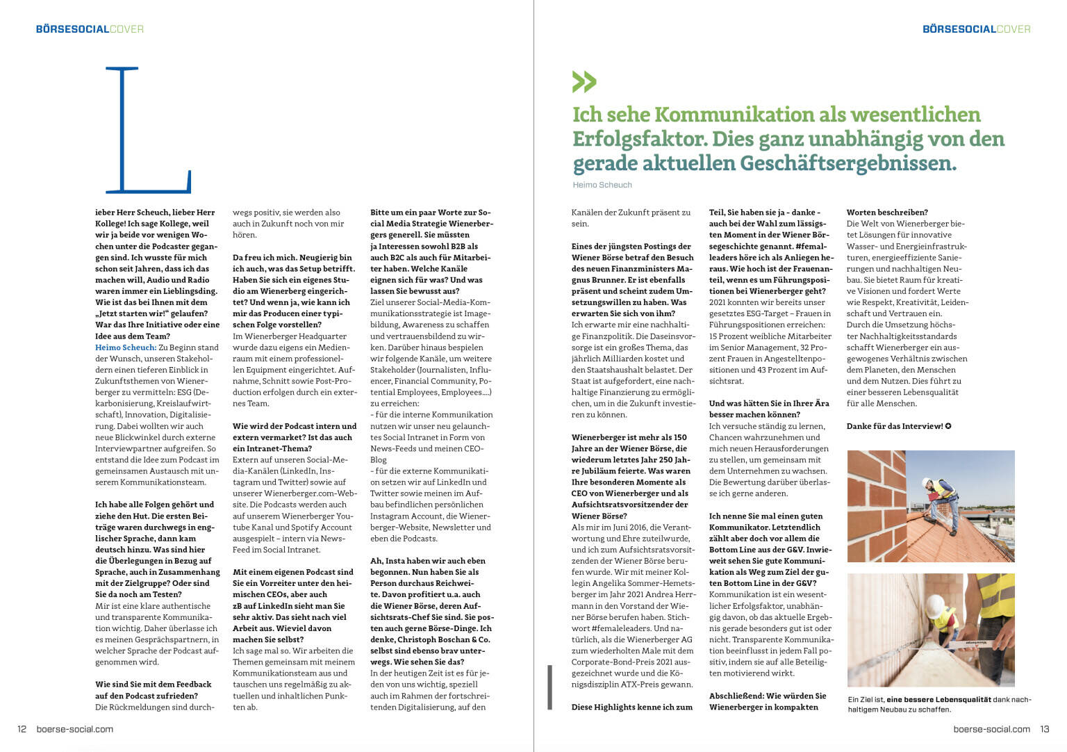 - für die externe Kommunikation setzen wir auf LinkedIn und Twitter sowie meinen im Aufbau befindlichen persönlichen Instagram Account, die Wienerberger-Website, Newsletter und eben die Podcasts.