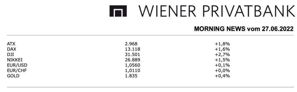Aus den Morning News der Wiener Privatbank: Klare Zuwächse gab es zum Wochenausklang auch für den heimischen Markt, der ATX konnte mit einem Plus von 1,8% aus dem Handel gehen, was das Minus für die gesamte Woche auf 0,9% reduzierte. Auch in Wien war es eine Erholung nach den zuletzt deutlichen Rückgängen, auch kam teilweise Hoffnung auf, dass die US-Notenbank auf ihrem schnellen Zinserhöhungskurs etwas den Fuß vom Gas nehmen könnte, sollte die Wirtschaft in eine Rezession rutschen und die Inflation sich abkühlen. Von der makroökonomischen Seite kamen eher negative Nachrichten, der deutsche ifo-Geschäftsklimaindex wurde mit 92,3 Punkten leicht schwächer als erwartet gemeldet. Raiffeisen Research senkte die Gewinnprognosen für Rosenbauer, das Kursziel wurde von 42,5 Euro auf 39,0 Euro zurückgenommen, die Einstufung als „Hold“ wurde aber bestätigt, der Feuerwehrausrüster konnte den Tag mit einem stolzen Plus von 4,8% beenden. Ein Plus von 3,7% gab es für Mayr-Melnhof, der Kartonhersteller kauft die britische ESSENTRA Packaging samt Tochterunternehmen auch in den USA um 312 Millionen Pfund und will so in den als krisensicher geltenden Markt für Pharma-Sekundärverpackungen investieren und dort wachsen, für die Aktie ging es am Freitag um 3,7% nach oben. Zulegen konnten auch die Ölwerte, Schoeller-Bleckmann erzielte einen Anstieg von 1,9%, für OMV ging es sogar um 3,3% nach oben, das Unternehmen meldete nach dem Unfall in der Raffinerie Schwechat signifikante Fortschritte bei der Installation eines alternativen Versorgungssystems und erwartet die vollständige Wiederinbetriebnahme und volle Auslastung der Raffinerie in der zweiten Hälfte Q3/2022.