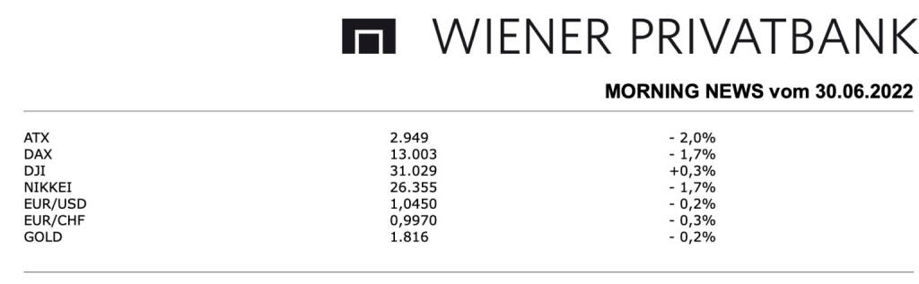 Aus den Morning News der Wiener Privatbank: Die Wiener Börse hat am Mittwoch den Handel mit klaren Kursrückgängen beendet, der ATX musste um 2,0% nachgeben, womit der jüngste Erholungsschub am heimischen Markt vorerst einmal ein Ende fand. Eine etwas niedrigere als erwartete Inflation in Deutschland konnte die Stimmung der Anleger nicht wirklich aufhellen, die Verbraucherpreise stiegen in der größten Volkswirtschaft der Eurozone um 7,6%, allgemein war mit einem Anstieg von 7,9% gerechnet worden. Die Meldungslage bei den heimischen Unternehmen gestaltete sich sehr mager, es gab so gut wie keine signifikanten Neuigkeiten. Die im Index schwergewichteten Banken mussten allesamt nachgeben, für die Bawag ging es um 2,6% nach unten, die Erste Group verbilligte sich um 3,7% und für die Raiffeisen Bank International gab es einen Rückgang von 1,2%.