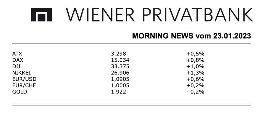 Aus den Morning News der Wiener Privatbank: "Der Wiener Aktienmarkt hat den Handel am Freitag mit klaren Kursgewinnen beendet und konnte so einen Teil der kräftigen Vortagesverluste wettmachen. Der ATX kletterte um 0,5% nach oben, was für die gesamte Woche gesehen einen Zuwachs von 0,4% bedeutete. Am Vortag hatte der Wiener Markt kräftige Einbußen erlitten, US-Konjunkturnachrichten, die auf eine Abkühlung der Wirtschaft hindeuteten, hatten die Marktstimmung international belastet. Mit Blick auf Inflation und Geldpolitik in Europa standen am Freitag Aussagen von Christine Lagarde im Fokus. Die EZB-Präsidentin hat die Entschlossenheit der Notenbank bekräftigt, im Kampf gegen die Inflation nicht nachzulassen. Die Meldungslage zu den einzelnen Unternehmen blieb zum Wochenende hin mager, es gab lediglich eine Analystenstimme zu voestalpine. Die Deutsche Bank bestätigte in einer aktuellen Analyse die Kaufempfehlung für die Papiere und erhöhte das Kursziel von 31,0 Euro auf 33,0 Euro, die Aktie konnte sich dadurch um 2,0% verbessern. Unterstützung für den Index kam auch von den großen heimischen Banken, die allesamt zulegen konnten, für die Bawag gab es ein Plus von 1,0%, die Erste Group konnte sich um 1,3% verbessern und für die Raiffeisen Bank International ging es um 1,8% nach oben.