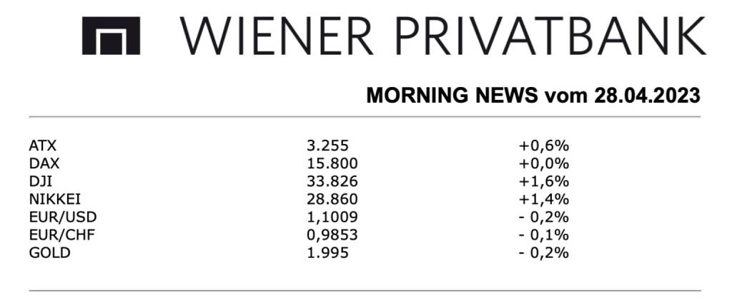 Aus den Morning News der Wiener Privatbank: "Die Wiener Börse hat am Donnerstag befestigt geschlossen, der ATX verbuchte ein Plus von 0,6%. Am heimischen Aktienmarkt prägte vor allem die auf Hochtouren laufende Berichtssaison das Handelsgeschehen, Unternehmenszahlen wurden von AMAG, Andritz, Polytec, Strabag und Warimpex präsentiert, heute folgen dann noch die Erste Group, OMV und Palfinger mit den aktuellen Quartalsergebnissen. In einem starken europäischen Bankensektor konnten auch die heimischen schwergewichteten Bankenwerte klare Kursgewinne aufweisen, die Bawag erzielte einen Zuwachs von 1,0%, für die Erste Group ging es um 1,4% nach oben und die Raiffeisen Bank International konnte sich über einen 1,8% höheren Schlusskurs freuen. Andritz musste trotz erfreulicher Geschäftszahlen um 1,2% nachgeben, der Anlagenbauer hat zu Jahresbeginn mehr Umsatz und deutlich mehr Gewinn erwirtschaftet. Im ersten Quartal legte der Umsatz um 28,5 Prozent auf 1,96 Milliarden Euro zu, das Konzernergebnis stieg im Vergleich zum Vorjahreszeitraum um 46,2 Prozent auf 104,5 Millionen Euro. Ein Minus von 2,8% gab es für Strabag, der Bauriese hat im Jahr 2022 weniger Gewinn gemacht. Unter dem Strich blieben 472,5 Millionen Euro, ein Rückgang um 19 Prozent zum Jahr davor, aber der zweithöchste Wert seit Bestehen des Unternehmens, wie der Konzern betonte. Die Bauleistung erhöhte sich gegenüber 2021 um 10 Prozent auf 17,7 Milliarden Euro, im abgelaufenen Geschäftsjahr weitete sich der Auftragsbestand trotz steigender Baukosten und beschleunigter Zinswende um 6 Prozent auf 23,7 Milliarden Euro aus und markierte damit einen neuen Rekord zum Jahresende. Amag konnte ein Plus von 0,9% erzielen, der Aluminiumkonzern präsentierte einen leicht gestiegenen Umsatz von 404,8 Millionen Euro, nach Abschreibungen ging der Gewinn nach Steuern von 32,5 Millionen Euro auf 26,8 Millionen Euro zurück. Polytec erzielte ein Plus von 0,5%, der Autozulieferer steigerte im Vorjahr zwar den Umsatz um 8,2 Prozent auf 601,4 Millionen Euro, musste aber bei den Ergebniszahlen herbe Rückgänge verzeichnen. Unterm Strich fiel 2022 ein Minus von 2,2 Millionen Euro an, nach einem Gewinn von 7 Millionen Euro 2021. Mayr-Melnhof konnte um 1,8% vorrücken, der Kartonhersteller investiert 660 Millionen Euro in die Modernisierung des Werks in Polen, damit solle die langfristige Wettbewerbsfähigkeit des größten Karton- und Papierwerkes der Gruppe, MM Kwidzyn, gesichert werden. Stärkster Titel des gestrigen Tages war Lenzing mit einem Plus von 3,5%, auch UBM Development konnte weiter zulegen und sich um ebenfalls 3,5% befestigen."