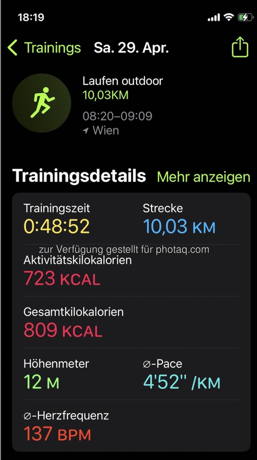 Runkit rechnet: Christian ist im Mai bisher 72,760 km gelaufen, im Schnitt täglich 10,394 km, ein Plus von 255,89 Prozent gegenüber dem April, als Christian 2,921 km Tagesschnitt hatte. Christians Top-Monat bisher: November 2020 mit 10,999 km täglich.