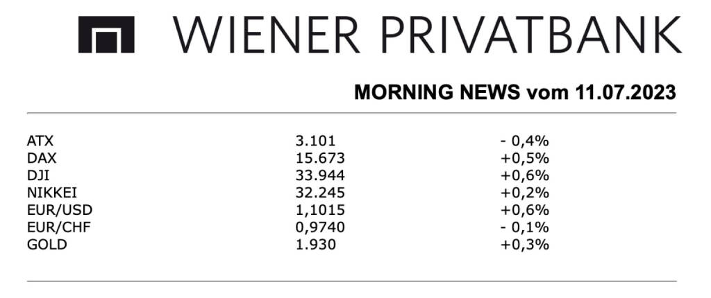 Aus den Morning News der Wiener Privatbank: "Die Wiener Börse hat am Montag mit etwas schwächerer Tendenz geschlossen. Der ATX fiel um 0,42 Prozent auf 3.101,37 Punkte. Das europäische Umfeld zeigte sich zu Wochenbeginn hingegen von seiner freundlichen Seite. Die Wall Street startete uneinheitlich in den Handel. Marktbeobachter sprachen von einem verhaltenen Geschäft und verwiesen auf die dünne Meldungslage. Auch datenseitig fiel der Wochenauftakt eher ruhig aus. Am Vormittag veröffentlichte das Sentix-Institut sein monatliches Konjunkturbarometer für die Eurozone. Es gab zum dritten Mal in Folge nach. Die Konjunktur der Eurozone bleibe im Rezessionsmodus, kommentierte Sentix die Umfrageergebnisse. Besonders dramatisch sei die Lage in der größten Euro-Volkswirtschaft Deutschland. Zudem sendeten neue Inflationsdaten aus China konjunkturelle Schwächesignale. Die Verbraucherpreise stagnierten im Juni erstmals seit mehr als zwei Jahren. Bisher verläuft die wirtschaftliche Erholung des Landes von der einst strengen Corona-Politik enttäuschend.
