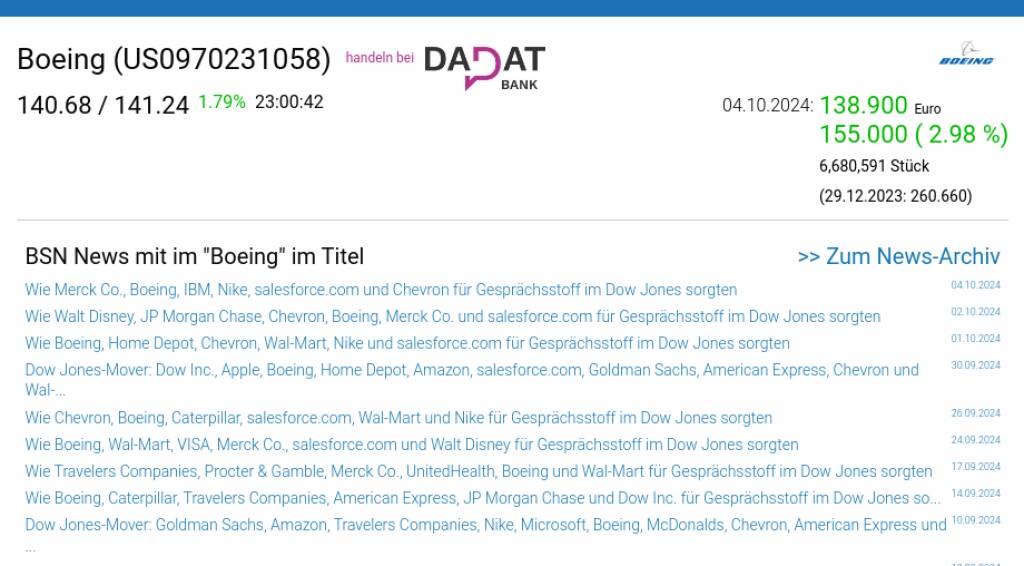 Boeing am 4.10. 2,98%, Volumen 83% normaler Tage
