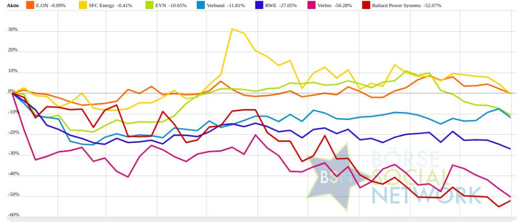 Ballard Power Systems -56,22% (Vorjahr: -22,76 Prozent) im Minus. Dahinter
