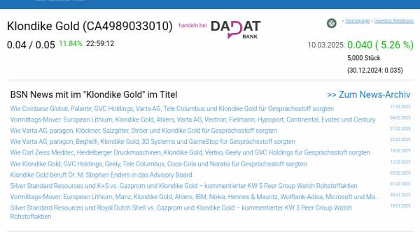 Klondike Gold am 10.3. 5,26%, Volumen 4799% normaler Tage