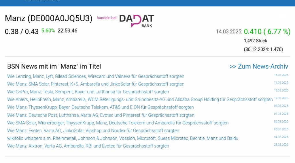 Manz am 14.3. 6,77%, Volumen 5% normaler Tage