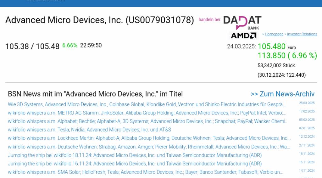 Advanced Micro Devices, Inc. am 24.3. 6,96%, Volumen 137% normaler Tage
