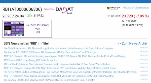 RBI am 31.3. -7,05%, Volumen 136% normaler Tage