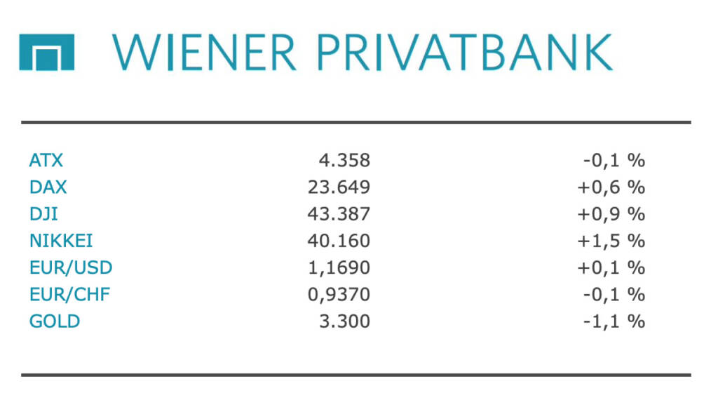 Aus den Morning News der Wiener Privatbank: Der Wiener Aktienmarkt hat gestern Donnerstag knapp behauptet geschlossen. Der österreichische Leitindex ATX gab nach einem ruhigen Handel um 0,07 Prozent auf 4.357,73 Punkte ab. An den europäischen Leitbörsen gab es nach den Vortagesabschlägen eine überwiegend leicht positive Anlegerstimmung. Die aktuelle Entspannung im Nahost-Konflikt unterstützt international etwas. US-Präsident Donald Trump kündigte mittlerweile neue Gespräche mit dem Iran für die kommende Woche an. Ins Blickfeld rückte auch eine positivere Wirtschaftseinschätzung für Österreich. Eine bessere wirtschaftliche Entwicklung Ende 2024 und zum Jahresanfang stimmt die Wirtschaftsforscher von Wifo und IHS etwas optimistischer für das Gesamtjahr als noch im März. Die österreichische Wirtschaft dürfte laut Wifo stagnieren. Nach Einschätzung von IHS dürfte sie um 0,1 Prozent wachsen. Gegenüber der Frühjahrsprognose gehen die Experten damit zumindest nicht mehr von einem dritten Rezessionsjahr ausgegangen. Ende März hatten die Institute einen Rückgang um 0,3 und 0,2 Prozent prognostiziert.