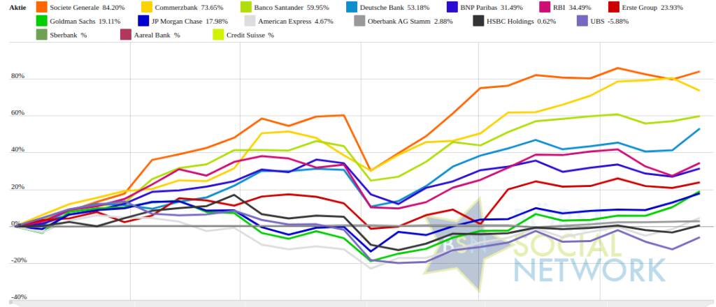 Societe Generale 81,8% (Vorjahr: 11,86 Prozent) im Plus. Dahinter