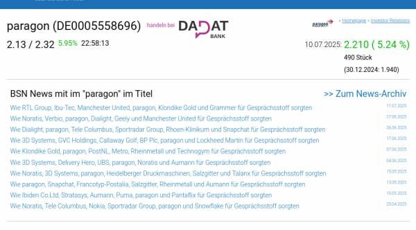 paragon am 10.7. 5,24%, Volumen 20% normaler Tage
