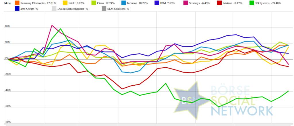 3D Systems -37,5% (Vorjahr: -48,35 Prozent) im Minus. Dahinter
