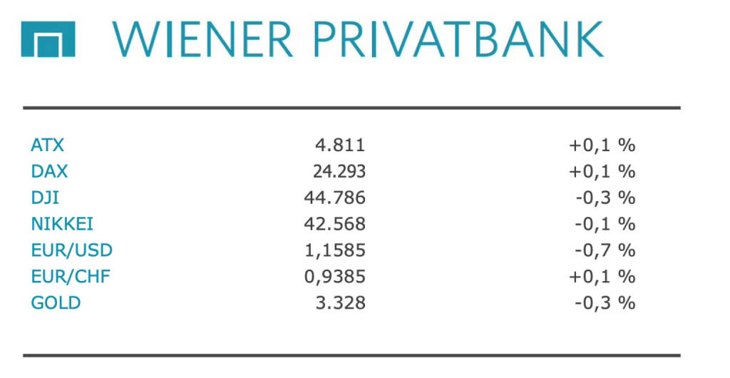 Aus den Morning News der Wiener Privatbank: "Der Wiener Aktienmarkt hat gestern Donnerstag ohne klare Richtung geschlossen. Der österreichische Leitindex ATX beendete den Tag mit einem Plus von 0,05 Prozent auf 4.810,85 Punkte. Anleger warten auf das Notenbankentreffen im US-amerikanischen Jackson Hole. Von den Reden und Kommentaren der Notenbankvertreter erhoffen sich Börsianer heute Freitag Hinweise auf die kommenden Zinsentscheidungen der US-Notenbank Fed. In Wien sorgten zudem Unternehmensergebnismeldungen für Impulse. So büßten die Aktien von Porr und der SBO nach der Vorlage von Quartalszahlen 7,6 bzw. 5,4 Prozent ein. Analysten der Erste Group bewerteten die Zweitquartalszahlen des Baukonzerns Porr als durchwachsen. Der Öl- und Gasfeldausrüster SBO bekam indes im ersten Halbjahr die Unsicherheiten am Markt und eine verhaltene Investitionstätigkeit zu spüren. Die Papiere von Mayr-Melnhof verloren 2,1 Prozent. Der Kartonhersteller hatte im ersten Halbjahr 2025 ein starkes Ergebnis bei stabilem Umsatz eingefahren. Nachrichten gab es am Nachmittag von der Strabag. Der Baukonzern erhielt im Konsortium mit der britischen Firma Equitix den Auftrag für die Modernisierung eines 110 Kilometer langen Wasserleitungssystems im Nordwesten Englands. Bereits im Jänner hatte der Auftraggeber United Utilities (UU) das Konsortium als "bevorzugter Bieter" ausgewählt. Strabag-Aktien schlossen gestern dennoch mit einem Minus von 4,5 Prozent.