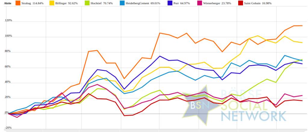 Die Durchschnittsperformance ytd der BSN-Group Bau & Baustoffe ist 66,52% und reiht sich damit auf Platz 1 ein:
