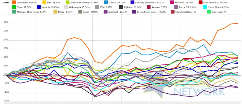 voestalpine 54,39% (Vorjahr: -35,82 Prozent) im Plus. Dahinter