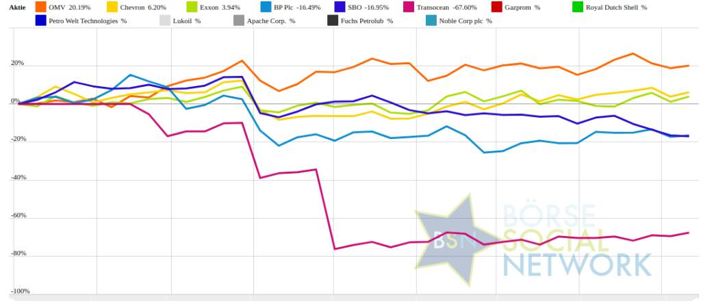Transocean -31% (Vorjahr: 0 Prozent) im Minus. Dahinter