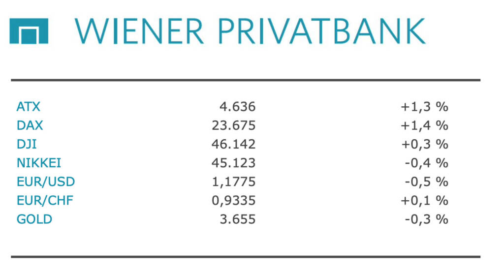 Aus den Morning News der Wiener Privatbank: "Die Wiener Börse hat gestern Donnerstag nach der Zinssenkung der US-Notenbank Fed mit Gewinnen geschlossen. Sie folgte damit dem europäischen Trend, wobei die Zuwächse dort mitunter noch deutlicher ausfielen. Zum Handelsende notierte der ATX 1,26 Prozent im Plus bei 4.635,87 Punkten. Die schwache erste Wochenhälfte konnte der Leitindex so jedoch noch nicht ganz wettmachen. Immerhin eroberte er mit der 50-Tagelinie eine viel beachtete charttechnische Hürde zurück. Der ATX Prime gewann am Donnerstag 1,27 Prozent auf 2.313,77 Zähler.