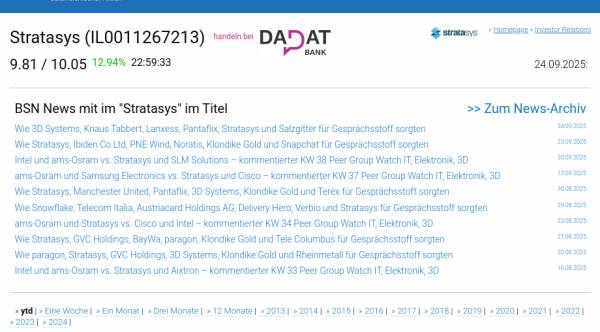 Stratasys am 24.9. 11,67%, Volumen 0% normaler Tage