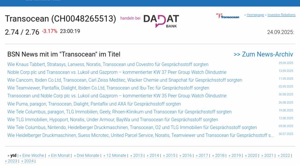 Transocean am 24.9. 5,63%, Volumen 0% normaler Tage