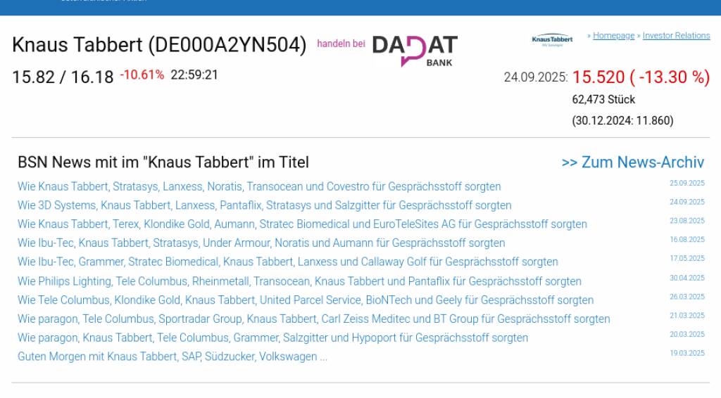 Knaus Tabbert am 24.9. -13,30%, Volumen 403% normaler Tage